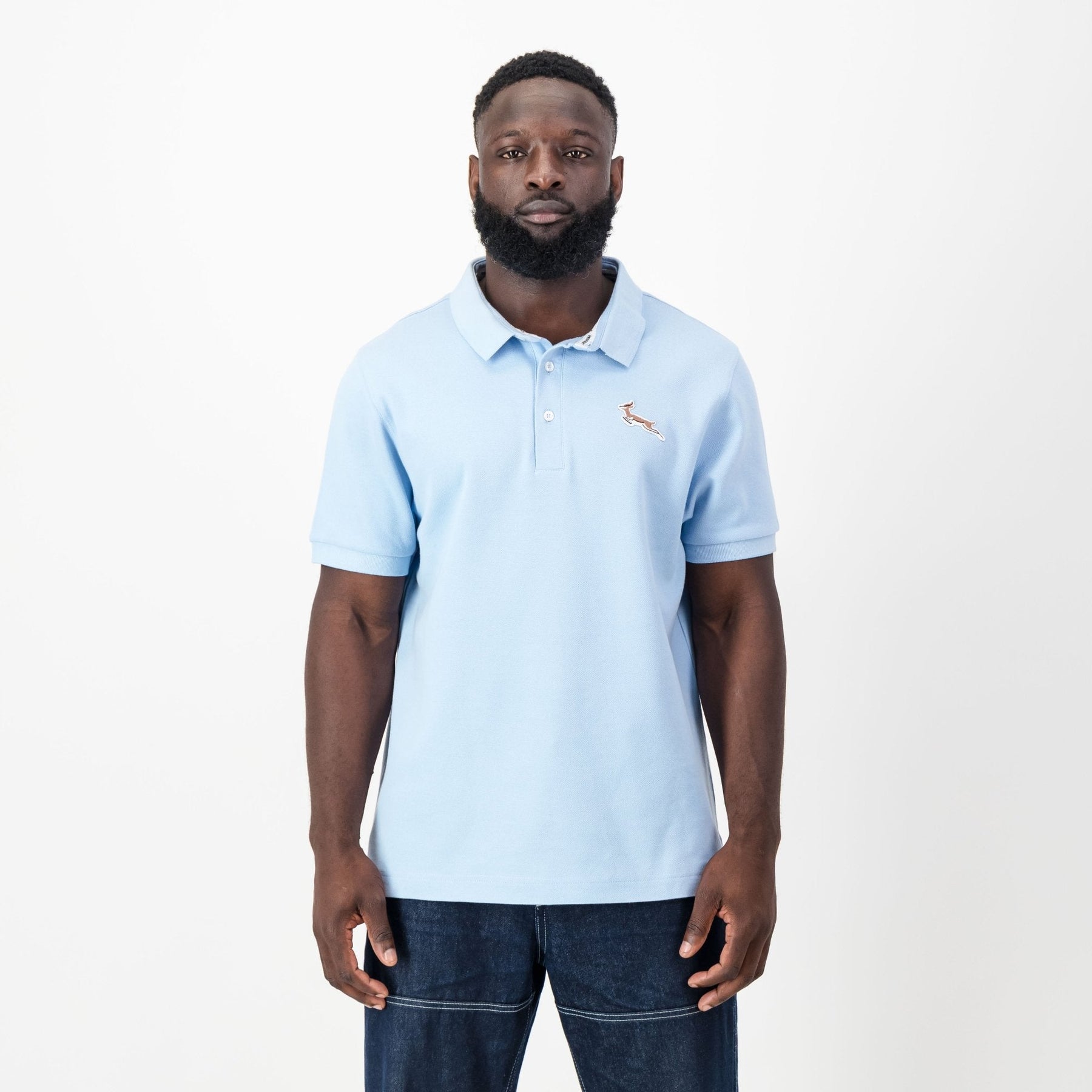 Introducing our Springboks Classic Polo, expertly crafted from heavyweight 100% cotton interlock pique fabric for lasting comfort and durability. The interior features a soft finish and a textured surface, enhancing its appeal. This timeless piece showcases a subtle yet refined look, highlighted by a high-quality embroidered felt appliqué of the neutral-tone Springbok badge on the wearer’s left chest. Available in five classic colours—black, stone, military olive, Old Money Blue, and OS Green—it embodies enduring style and versatility for any occasion. Perfect for those who appreciate sophistication and exceptional craftsmanship in their wardrobe essentials.