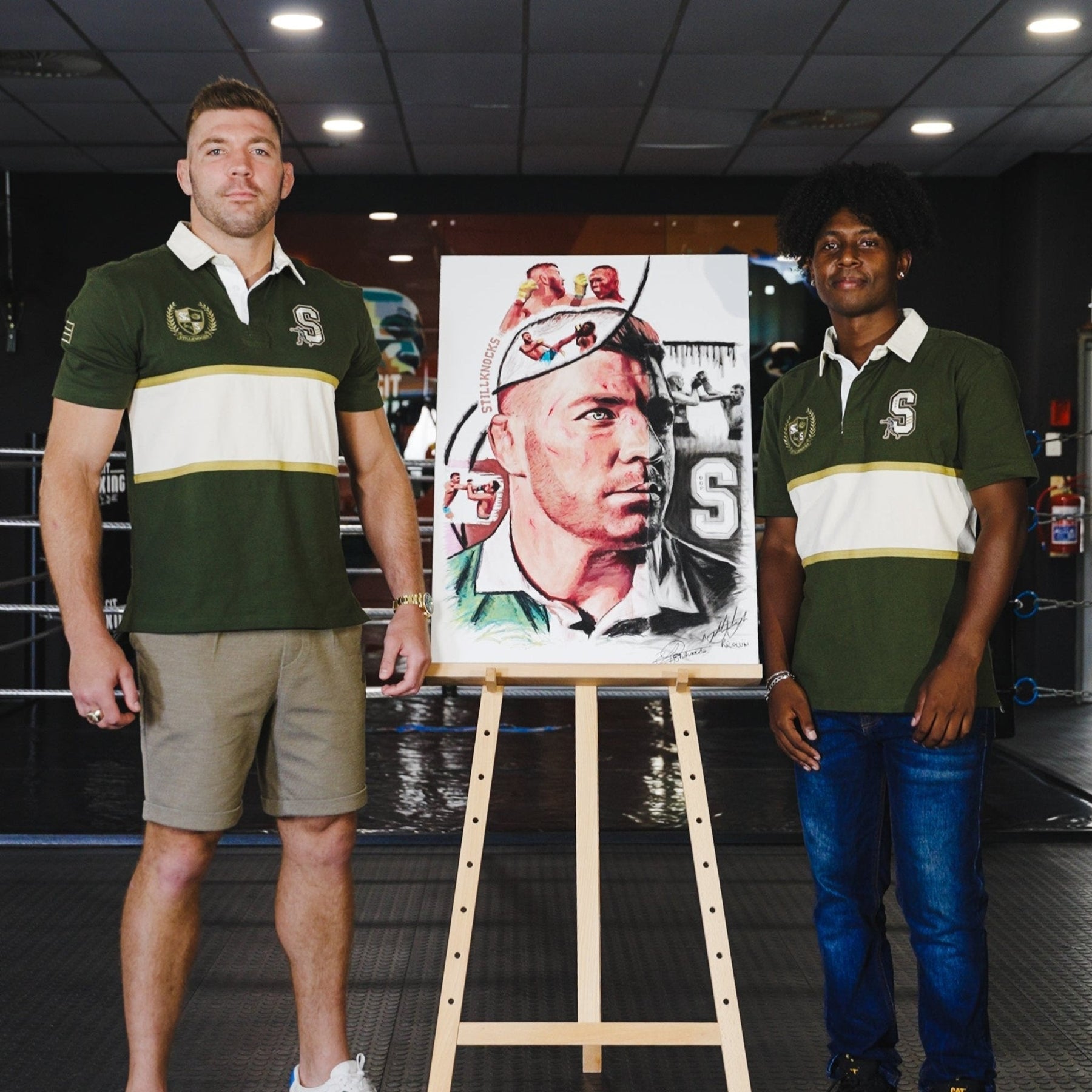 This exclusive collaboration with iconic local designer Ricollin Moodley brings the legendary spirit of Dricus "Stillknocks" Du Plessis’ most unforgettable fights to life. The original canvas painting, created using lipstick, serves as the foundation of this unique design. Reimagined in striking black and white, the artwork is elevated with HD print elements, transforming this powerful piece of art into wearable form. The result is a bold, limited edition tee that blends athletic history with artistic innovation.